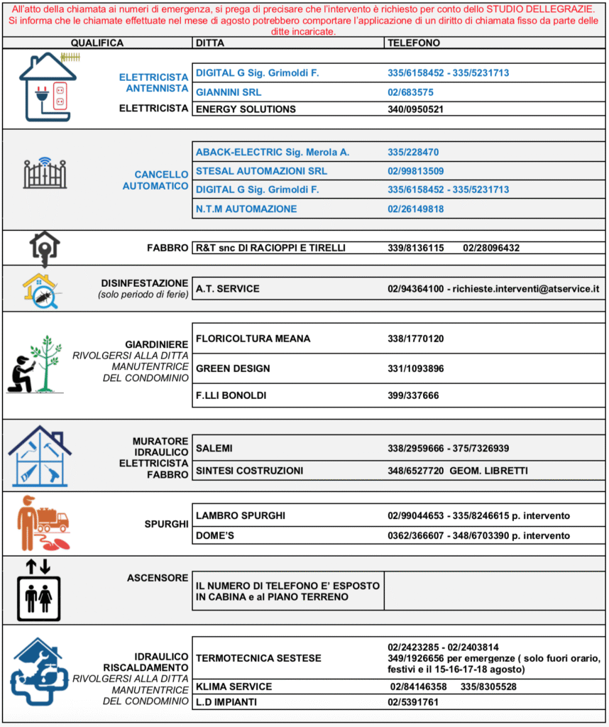Se non sono reperibili i soliti fornitori del Condominio prova con questi